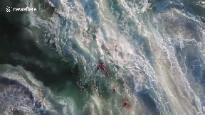 This is the heroic moment San Diego Lifeguards make rescues in high surf at Windansea Beach in La Jo..
