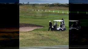 Man in Sweden walks in frozen pond with no pants on just to hit his gulf ball