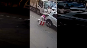 Woman on motorcycle escaped death from overturning truck