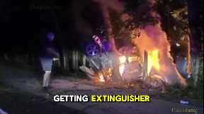 Blue Mound officers pull a driver from a burning car before fire engulfs vehicle