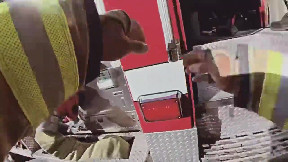 ----- Santa Ana, CA - New video shows the dramatic moment firefighters with the Orange County Fire ..