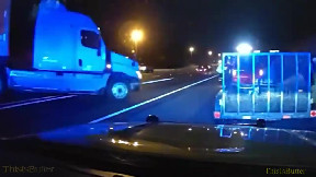 Dashcam show semi driver narrowly misses hitting officers conducting a traffic stop on I-85