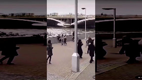 Selfie mania: Tourist nearly drowns while taking a photo of the sea, but a wave washes her away...